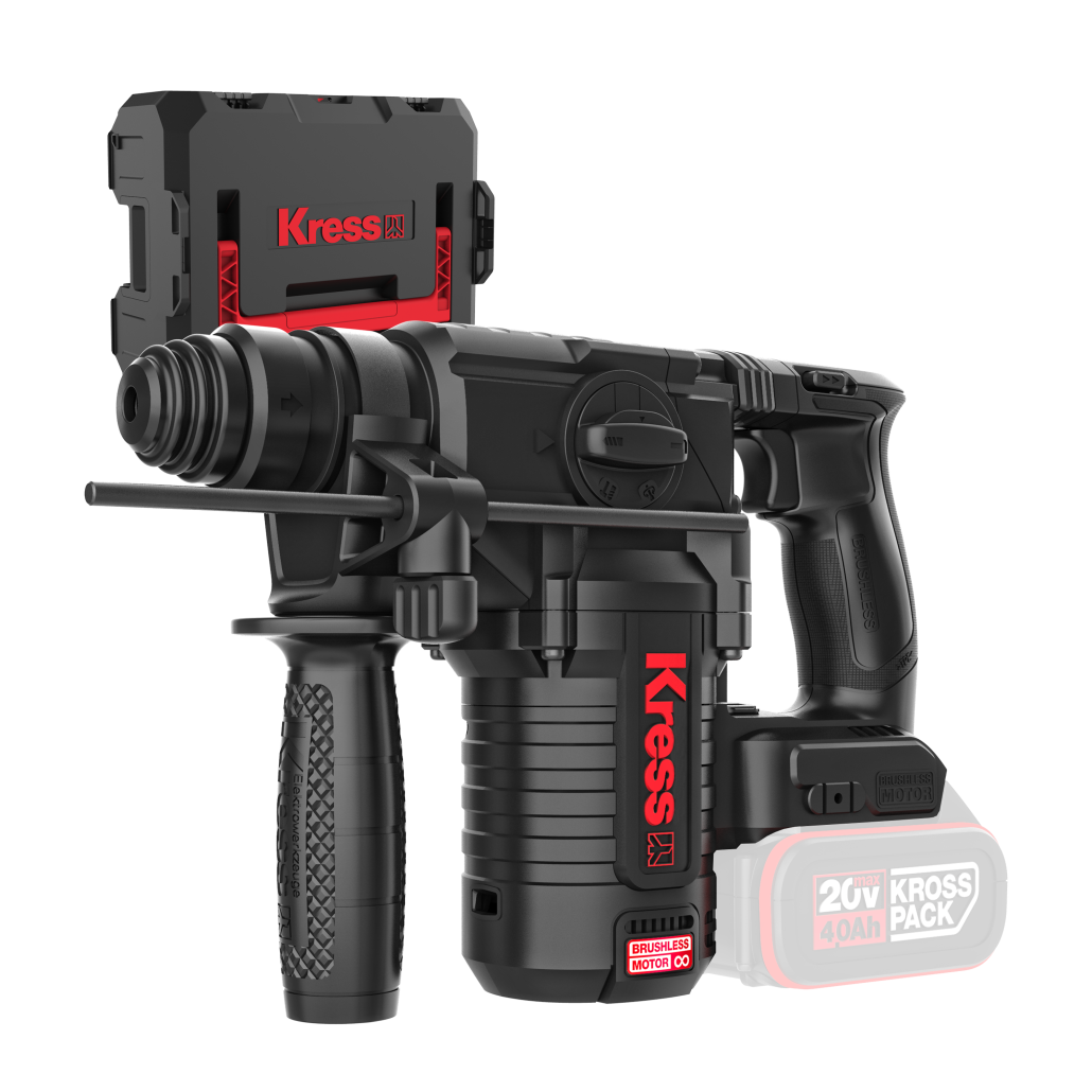 O Martelo Perfurador Kress 20V KUC61.91 foi concebido para profissionais que exigem potência, precisão e durabilidade. Equipado com tecnologia Brushless (motor sem escovas), oferece até 50% mais autonomia, 25% mais potência e uma vida útil até 10 vezes superior em comparação com motores convencionais.